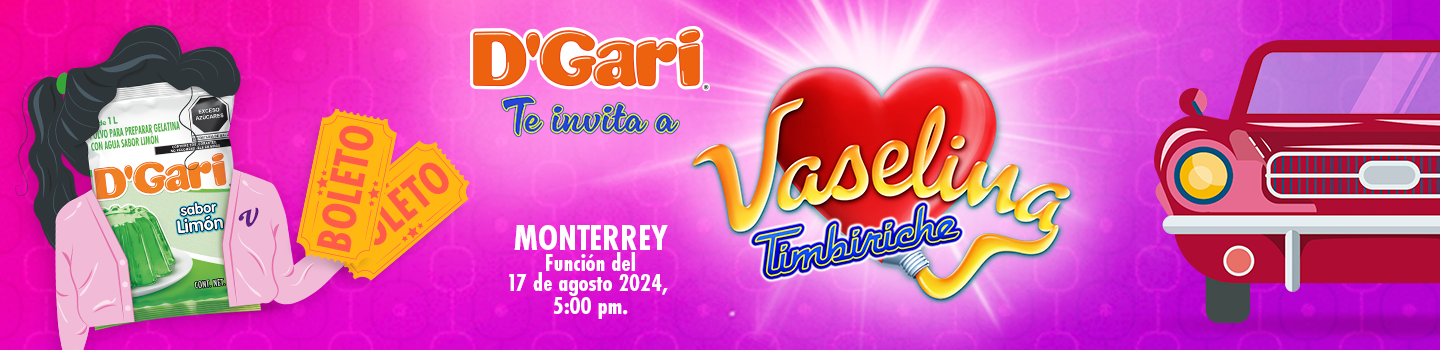 - En total se otorgarán 5 boletos dobles para la obra de teatro Vaselina con Timbiriche, que se presenta en el Escenario GNP Seguros, ubicado en Av. Benito Juárez No. 1022, Monterrey, Nuevo León.
